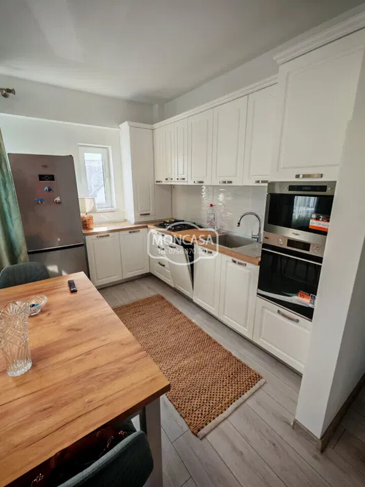 Apartament 3 camere in bloc tip vila, zona Bazar, etaj 2/2 cu pod (cu spatii compartimentate de depozitare in pod), 6 apartamente in vila, curte comuna, spatiu verde,zona linistita de vile. Apartamentul este mobilat si utilat nou . Dotat cu electrocasnice de calitate, centrala termica prin condensare,tamplarie exterioara din Pvc cu geam termopan, gresie, faianta, parchet, usa metalică la intrare, Totul Nou. Suprafata 74 mp, living deschis cu bucatarie, 2 dormitoare, o baie mare, 2 balcoane. Se vinde asa cum apare in poze!