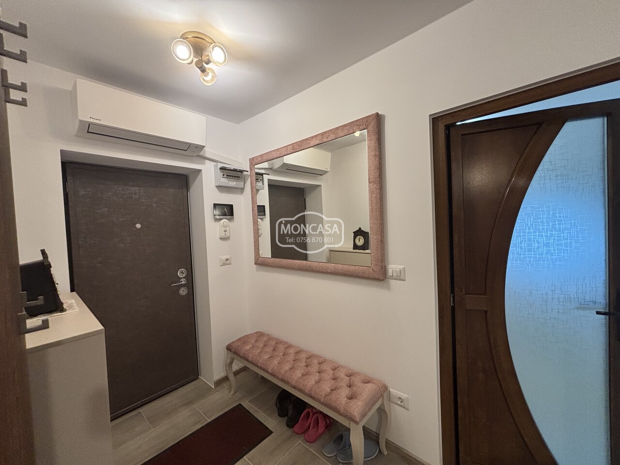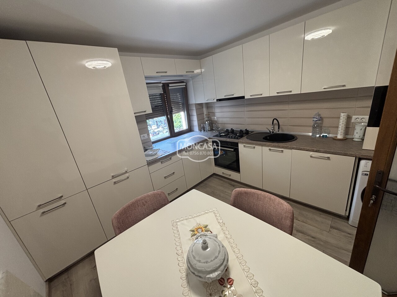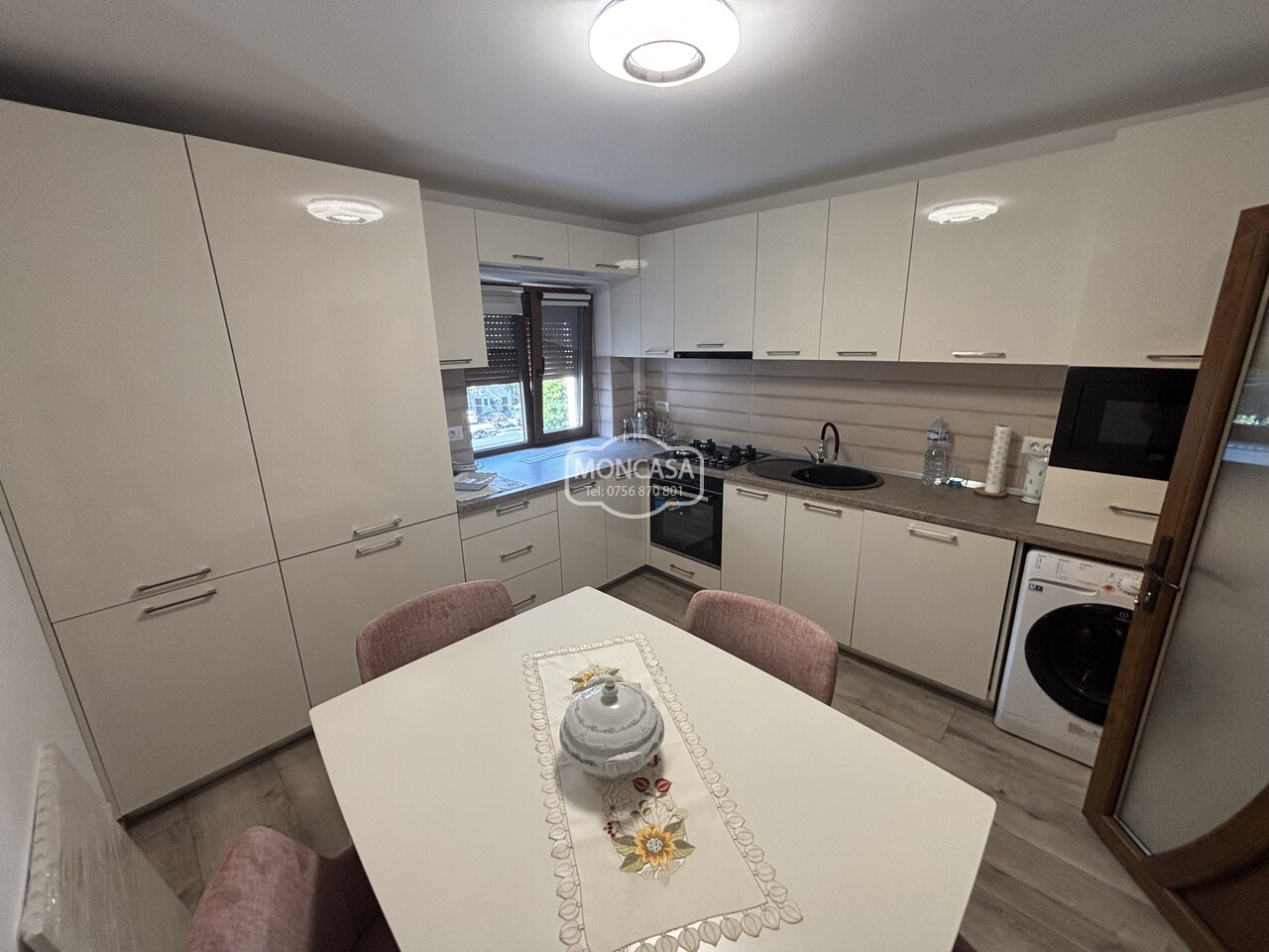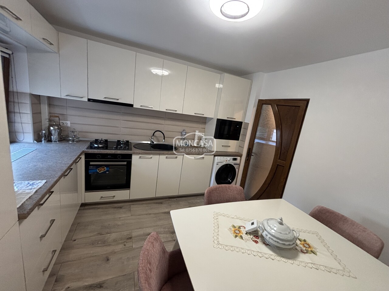 Apartament 3 camere zona Piata Mare etaj 2, cu suprafata de 65 mp utili si 3.98 mp balcon, 2 bai, renovat total, istalatie electrica si sanitara schimbate, tamplarie exterioara din PVC cu geam termopan si rulou, centrala termica prin condensare noua, bucatarie mobilata si utilata,decomandat, bloc pe cadre.