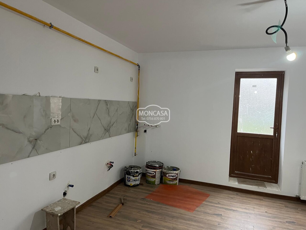 Casa este compartimentata in living cu bucatrie si baie de serviciu la parter si 2 dormitoare cu baie la mansarda, centrala termica pe gaz, tamplartie exterioara din PVC cu geam termopan, gresie, faianta, parchet.izolata exterior.